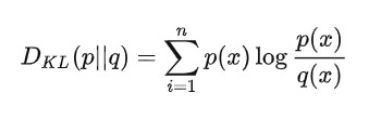 如果是两个随机变量P,Q,且其概率分布分别为p(x),q(x),则p相对q的相对熵为: