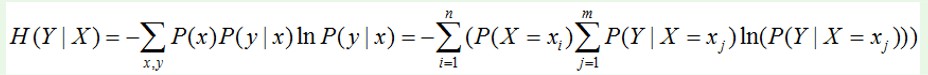 X给定的条件下,Y的信息熵,即H (Y |X )。公式为: