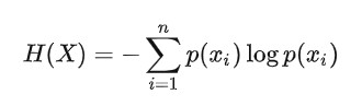 【小思考:为何公式是这样子的?其实只需熵和概率P成反比,1/P , 但是有个量纲缺点:地震发生的概率很小(P = 1/百万),则信息量为一百万。抛硬币概率1/2,则信息量为2。两者量纲差太大,取log之后,使得低范围的值稍微放大,高范围的值稍微放小。】