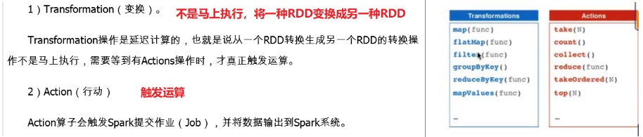 RDD可以有两种计算操作算子:Transformation(变换)与Action(行动)。