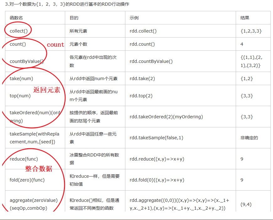 | foreach | 用于遍历RDD,将函数f应用于每一个元素,无返回值 | action算子 |