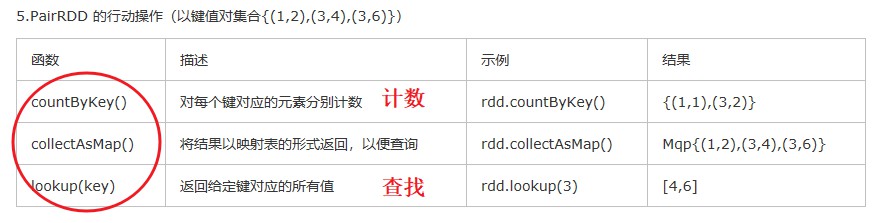 - lookup:查找某个key对应的value, 因为同一个key可能有多个value,例子:查找’s’时,将获得与该key相关的两个value, 即’Spark’和’Simple’