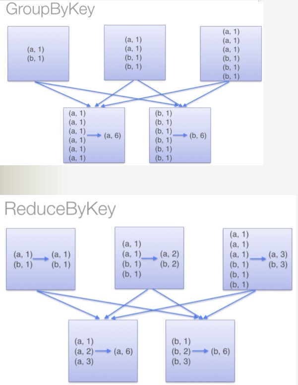 避免使用groupbykey,如果数据量过大,会造成内存溢出。每个执行器在执行函数之前必须在内存中保存一个key对应的所有value。