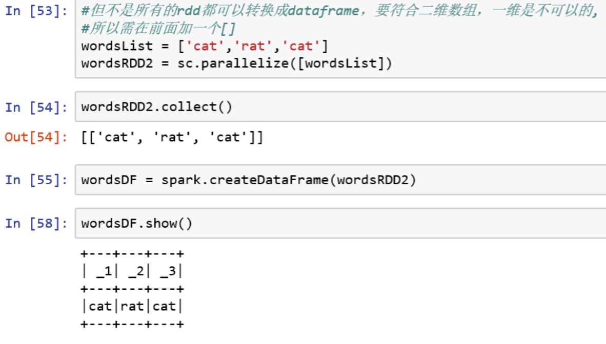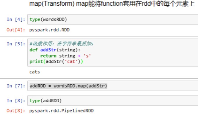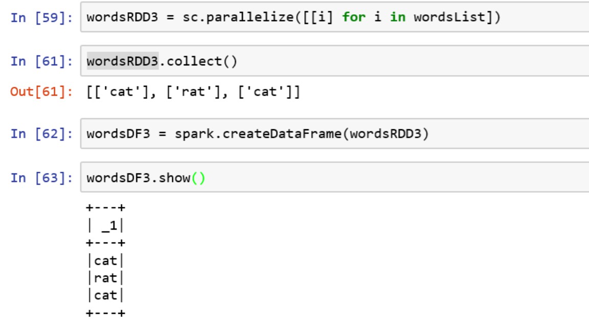 #建立RDD wordsList = ['cat','ele','rat','rat','cat'] wordsRDD = sc.parallelize(wordsList , 4)